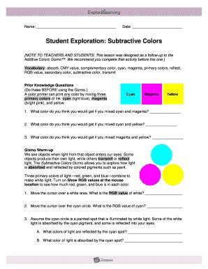 Download Student Exploration Subtractive Colors Answer Key Doc