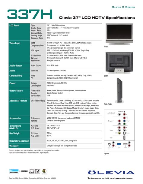 Read syntax olevia 337h manual Epub
